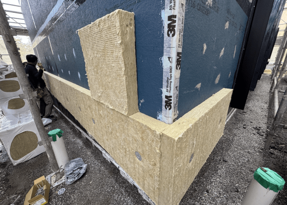 Z30Haus는 최적의 단열 성능을 위해 R30 수준의 벽체를 설계하였으며, 외단열에는 75mm 미네랄울 보드를 사용하고 중단열에는 50mm CCSF와 R11 글라스울을 추가했습니다. 여러 가지 단열 자재를 활용하여 결로 위험을 최소화하고, 외단열 비율을 높여 구조체 열교를 방지했습니다. 미네랄울의 장점은 불연성과 높은 투습성능입니다. 그러나 시공 중 미네랄울이 젖어버리는 현상이 발생해 방수 및 결로 문제를 점검하고 있습니다. 최종적으로, 이 방식이 장기적으로 안정성을 보장하는지를 확인할 예정입니다.
