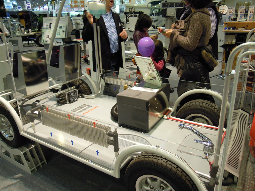 ALDE 사의 히터/보일러 통합 제품 축소차량 시현도. Alde사의 보일러/히터는 보통 모터홈의 고급모델에 채용됩니다.