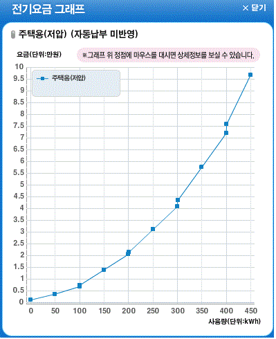 아시다시피 가정용 전기요금은 누진제로서 월간 사용량이 300KW/h를 넘어가면 전기료가 급격하게 증가합니다.
