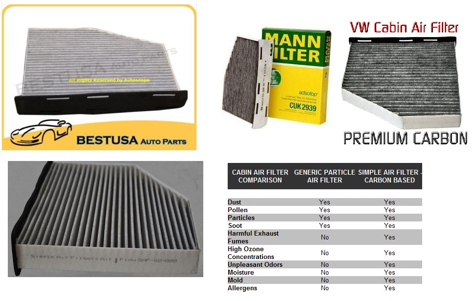 우선, 시중의 폭스바겐 차량용 필터샘플을 4~5종류 구했습니다. 구입처는 ebay와 중국의 필터제조공장에서 구입한 샘플 제품 등이었고 가격대는 6000원 ~ 13000원 수준. 이름을 모르는 OEM 제조사의 제품도 있고, MANN 같은 꽤 큰 규모의 호환필터 제조사도 있습니다. 실제 제품을 받아보니 모양만 같을 뿐 외형 품질은 제각각이었습니다. 형편없이 허접한 제품도 있고, 순정보다 더 좋아 보이는 제품도 있었습니다. 카본필터가 아얘 생략된 부직포필터도 있고요..