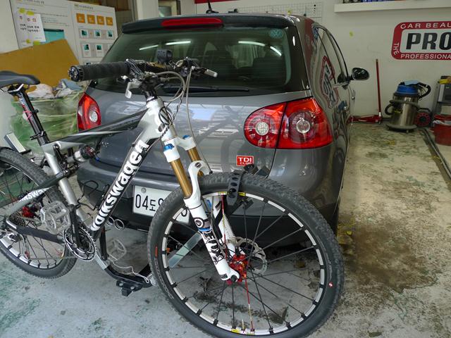 작업 맞기고 집에서 작업장까지 자전거타고 가서 차에 자전거 실어왔습니다.