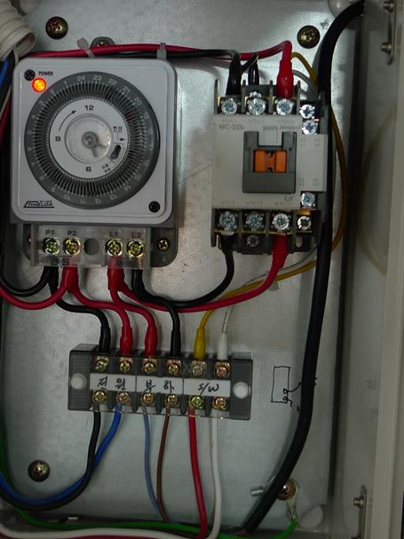그래서, 궁리끝에, 타임스위치로 동작을 하되, 부하전원은 신호에 따라 따로 공급되도록 마그넷스위치로 전원회로를 따로 구성하게 되었습니다.