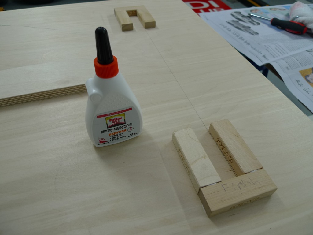 저 다리 위에 상판을 올립니다. 다리와 상판의 부착고정은 patex pl-50 본드 사용.