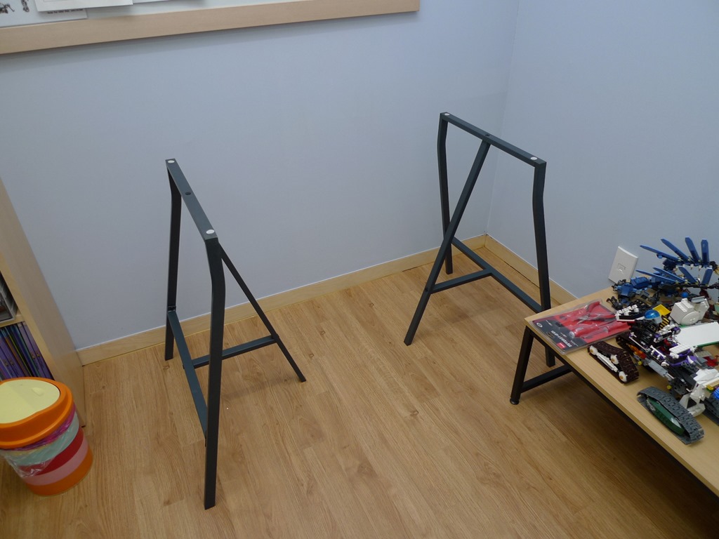 오른쪽에 있는게 새 책상 만들 재료.. IKEA VIKA 테이블다리, 18mm 자작나무 합판, 그리고 짜투리 나무.. VIKA 다리세트가격 2만5천원. 나머지는 모두 재활용품.
