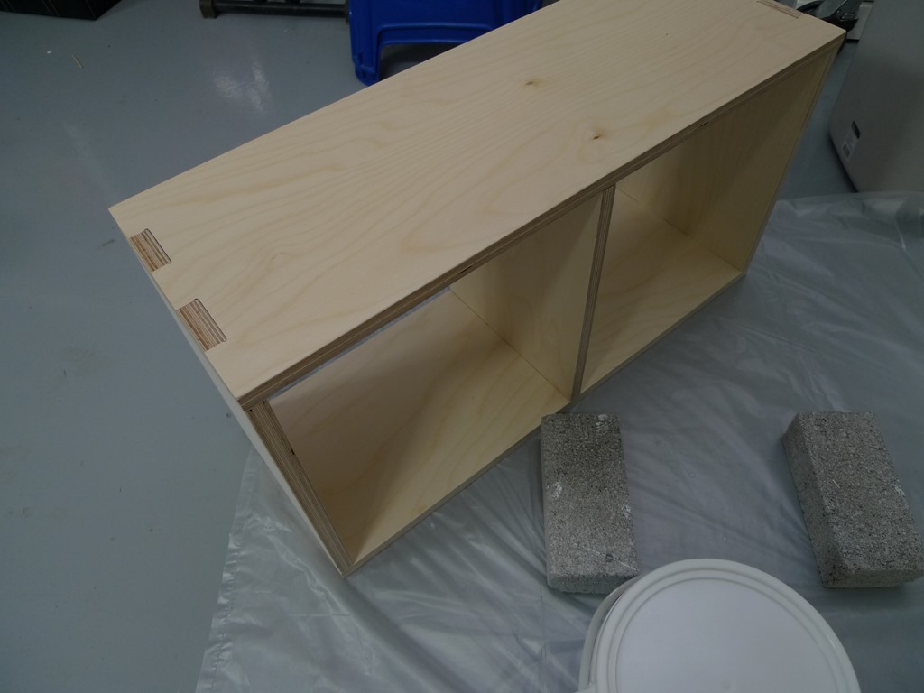 자작나무합판 18mm를 CNC로 재단하여 짜맞춰 본드로 붙이고, 책상 상판과 같은 방법으로 투명 바니쉬 마감