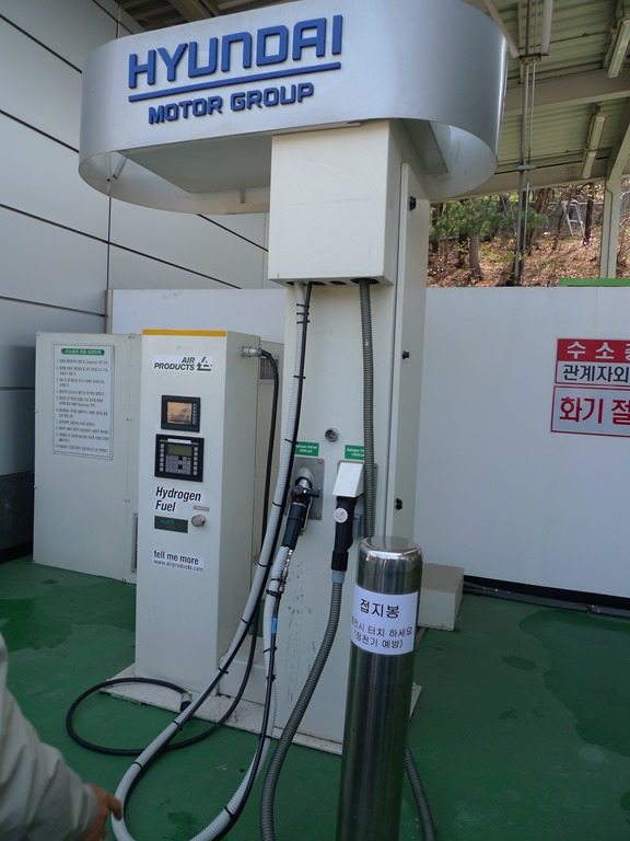수소가스 충진은, 당연한 얘기지만, 전용 충진스테이션에서 할 수 있다. 충진 노즐은 표준화 되어 있으며, 만충까지 5분 이내로 된다는 점이 EV가 극복할 수 없는 큰 장점이다.
