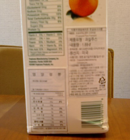 그래서, 우리나라에선 잠깐동안만 진짜 오랜지 쥬스를 맛볼 수 있었고, 지금까지도 판매되는 트로피카나 오랜지쥬스는 위의 4가지 조건을 만족하지 못하는 제품만 유통되고 있습니다.