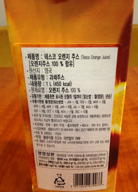 원산지가 영국이니, 영국산 오랜지는 아닐테고, 수입오랜지로 제조되었을 텐데, 오랜지의 원산지는 표기되어 있지 않네요..