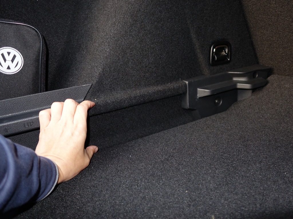 뉴골프는 이전세대 골프보다 트렁크용량이 30리터 늘어났습니다. 그런데, 뉴골프 트렁크의 가로,세로 모양은 구모델과 똑같습니다. 어디서 30리터가 증가했을까? 트렁크 바닥을 약 5cm 정도 내릴 수가 있습니다. 이렇게 트렁크 바닥을 내릴 경우 딱 30리터의 용적이 증가하게 됩니다.