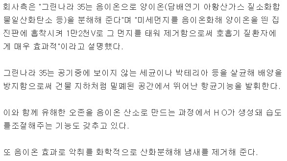 이렇게 효과가 검증되지 않은 엉뚱한 제품이 국내에서만 몇천억원 어치가 판매되었었고, 그 이후로 “음이온 공기청정기”는 시장에서 자취를 감추게 되었습니다.