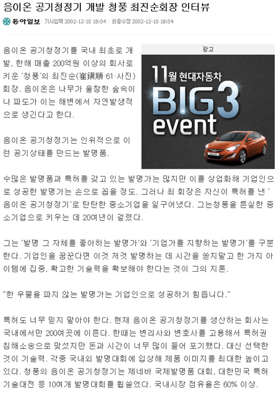 이렇게 자취를 감출 때까지, 청풍은 10여년간 음이온 공기청정기를 약 2000억원 어치 이상 판매한 것으로 추정됩니다. 실내공기질 향상에 도움이 되기는 커녕 해로운 물질을 발생시키는 제품으로 청풍이라는 회사는 떼돈을 벌었었고, 이후 2005년 경 당시 33이던 따님이 회장에 오르고, 바로 이어서 따님의 남편 분이 회장이 되시고, 원래 회장님은 막걸리사업에 진출하시고, 그리고 어떤 일이 벌어졌는지, 청풍은 급격히 망해갔고, 현재는 당시 직원이던 분이 쓰러져가던 회사를 인수하여 “청풍생활건강”이란 회사로 거듭났다네요. 지금은 10년전의 말도안되는 음이온 공기청정기는 판매하고 있지 않고, HEPA필터 공기청정기를 제조 판매하고 있습니다.
