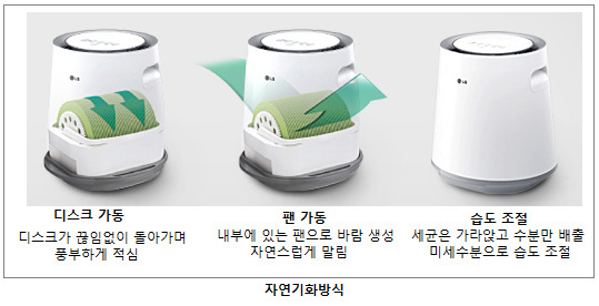 공기대류를 이용한 방식이라 속도가 너무 느린 것 같기는 한데, 필터 교환이 필요 없는 점은 매력이더라고요.