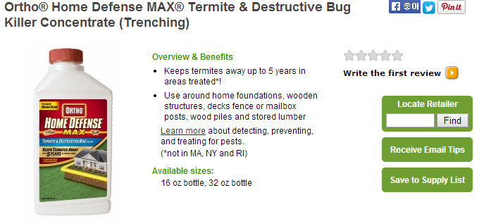 집의 외벽이나 외벽에 인접한 토양에 시공하여 외부 벌레가 집으로 침입하지 못하도록 하기 위한 장기 대책으로 선택한 살충제는, ORTHO사의 Home Defense MAX 제품입니다.