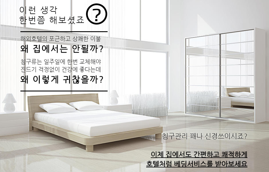 이러한 어려움을 해결(돈받고)해 주는 가정용 호텔베딩서비스가 최근 나왔습니다.