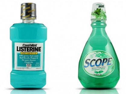 구강청결제의 실제적 효과논쟁을 불러일으켰던 리스테린과 스코프 제품.