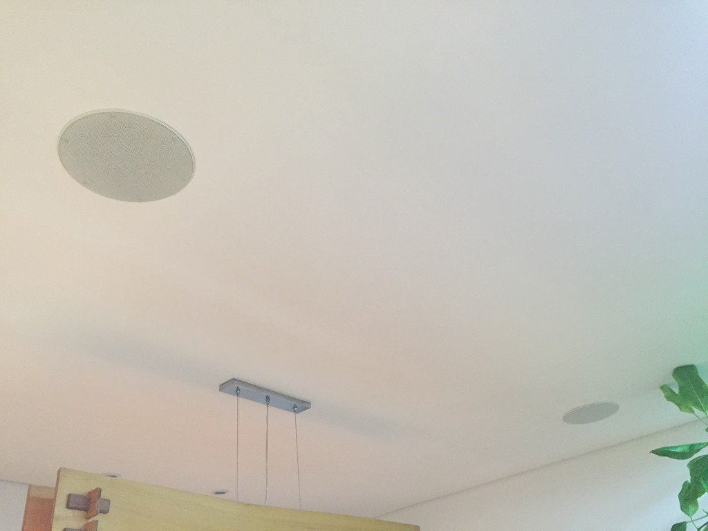 리어스피커는 기존에 가지고 있던 satelite 스피커로는 적절하게 설치할 수 없어, 천장 매립형(In-ceiling speaker)인 Yamaha NSIC800WH를 구입하여 설치했습니다.