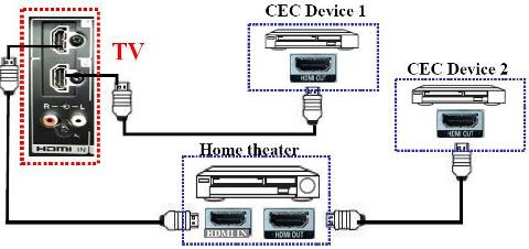 HDMI CEC(Consumer Electronics Control) 기능은, HDMI케이블로 연결되는 기기간에 콘트롤신호를 통합하여 콘트롤 할 수 있게 해 주는 규약입니다. TV, 셋탑, AV리시버가 모두 HDMI CEC기능을 지원하는 경우, 이들 기기를 어느 한개의 리모콘으로 통합 조절할 수 있으며, 전원콘트롤도 동기화 됩니다. 예를들어, IPTV셋탑을 켜면, AV리시버와 TV전원도 같이 켜지고, 꺼지게 됩니다. 그리고 TV리모콘의 볼륨을 조절하면, AV리시버의 볼륨이 조절됩니다.