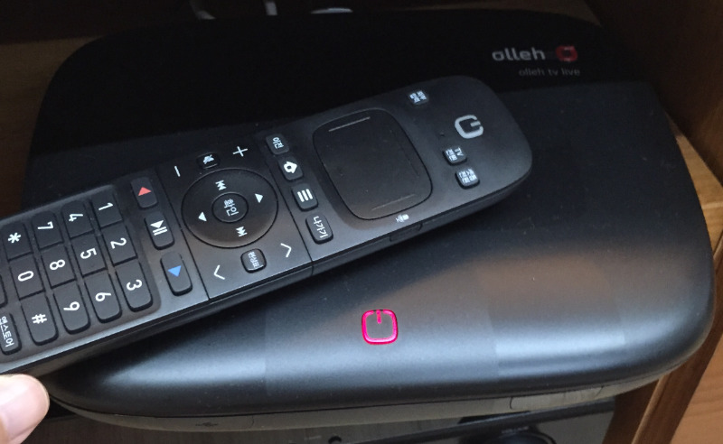 KT의 IPTV셋탑박스로서 “올레 스마트TV” 셋탑입니다. 월 500원 추가부담하면, 스마트TV셋탑으로 바꿔줍니다. 채널간 이동속도가 훨씬 빨라졌고, 소비전력이 줄었으며, 리모콘이 RF로 작동하여 리모콘을 겨냥할 필요없이 사용하기 쉽다는 장점이 있습니다.