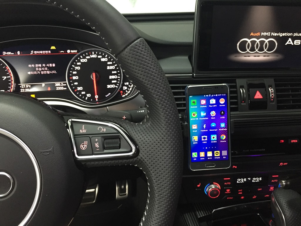 차량과 스마트폰에 모두 전용 거치대로만 제공되기에 내차와 내 휴대폰에 딱 맞는 Taylored fit 의 순정형 퀄리티의 스마트폰 거치가 되는 것입니다.