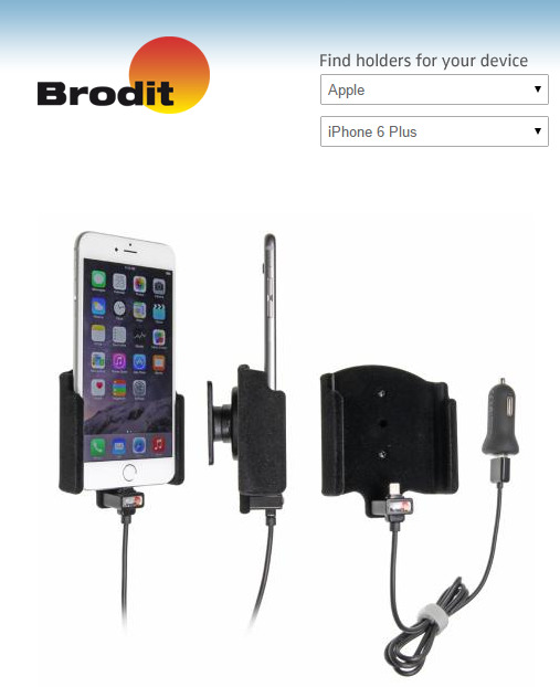 Brodit 거치대는 차량의 서로다른 디자인의 대시보드에 딱 맞게 제작되는 전용 마운트(Proclip마운트)와 서로 다른 크기와 모양의 스마트폰 모델별로 전용으로 출시되는 휴대폰 홀더로 이루어진 시스템 입니다.