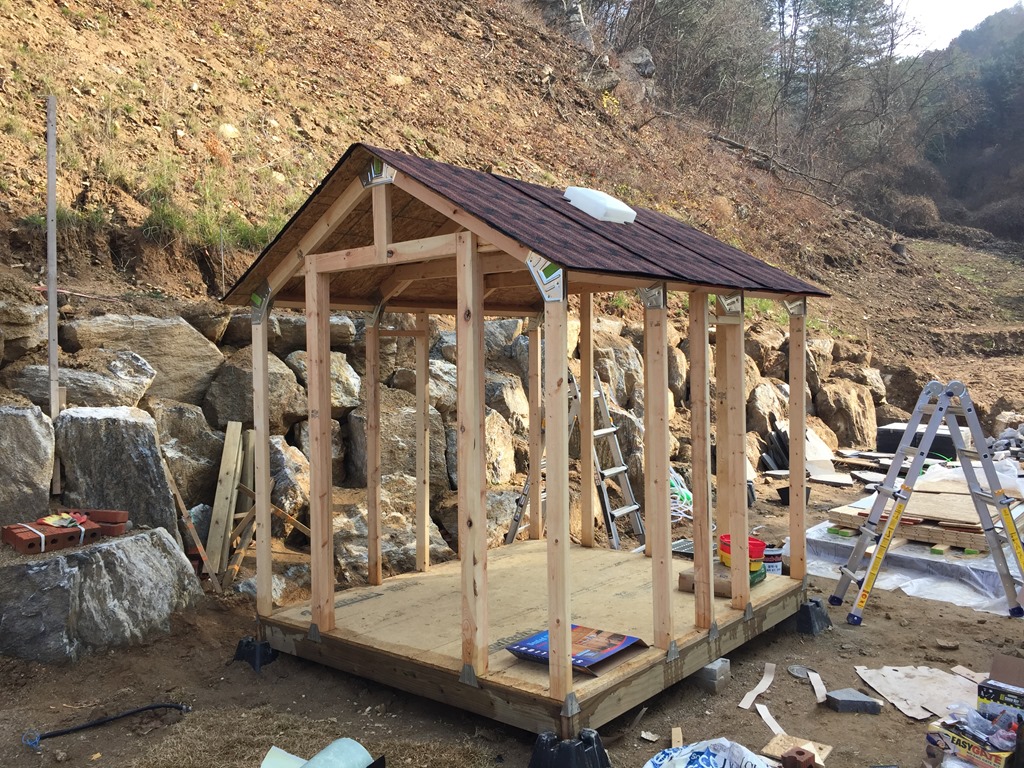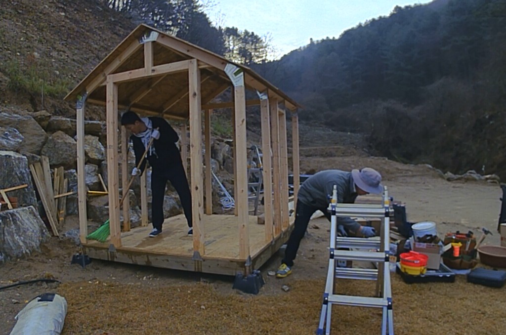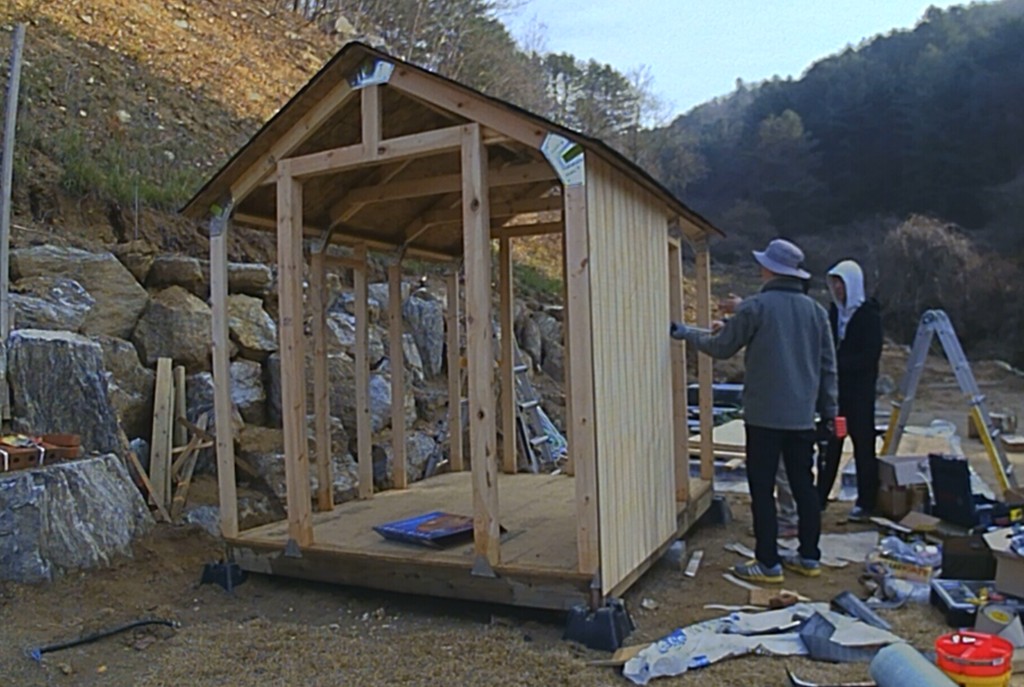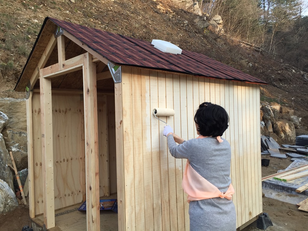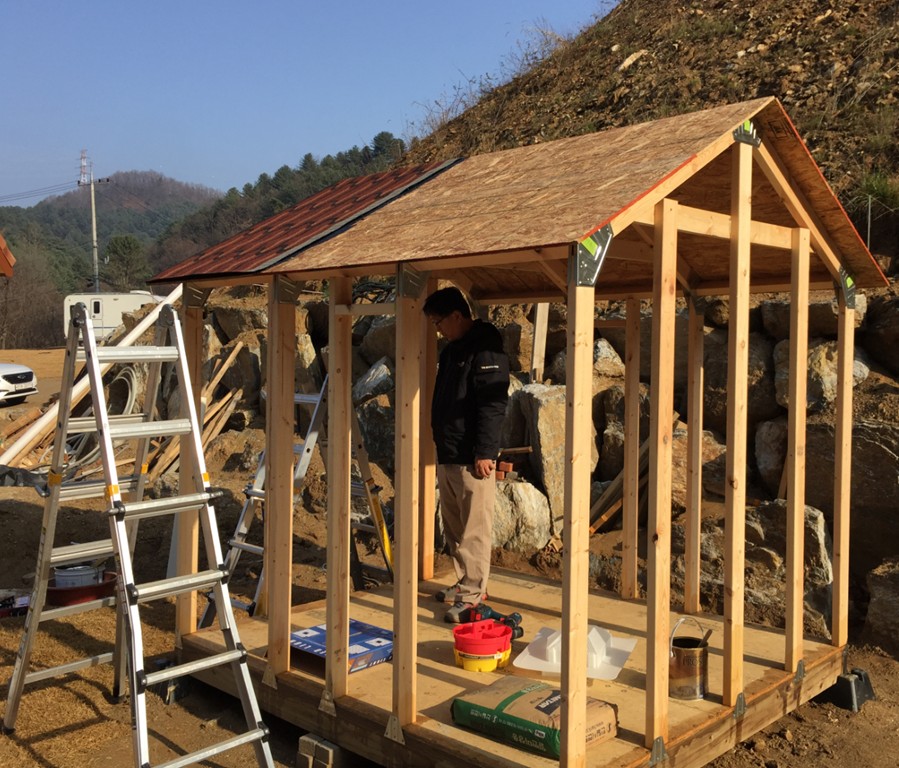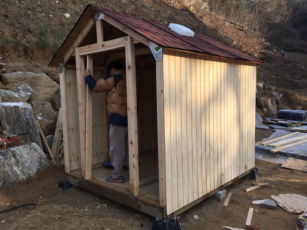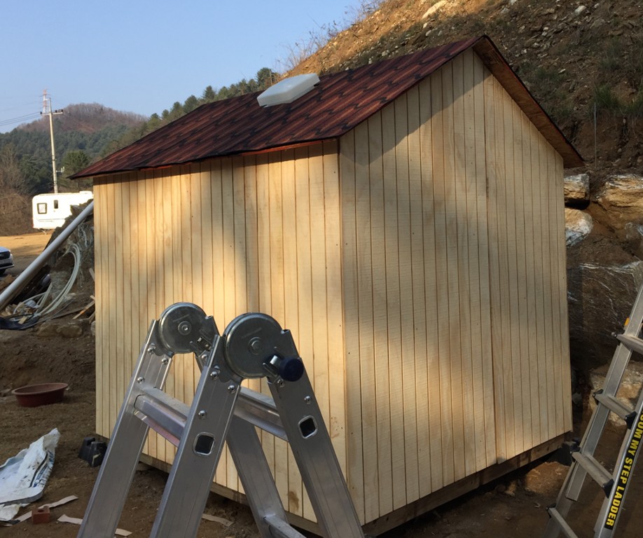 전문 목수가 했다면, 미리 설계하고 할 것도 없이 하루만에 끝냈겠지만, 초보이다 보니 꽉차게 이틀동안 작업했네요.. 이것도 일이라고 삭신이 쑤시지만, 그래도 뿌듯합니다. 이렇게 집을 지어 내부 단열만 하면, 살 집도 직접 지을 수 있겠다는 자신감까지 생깁니다.