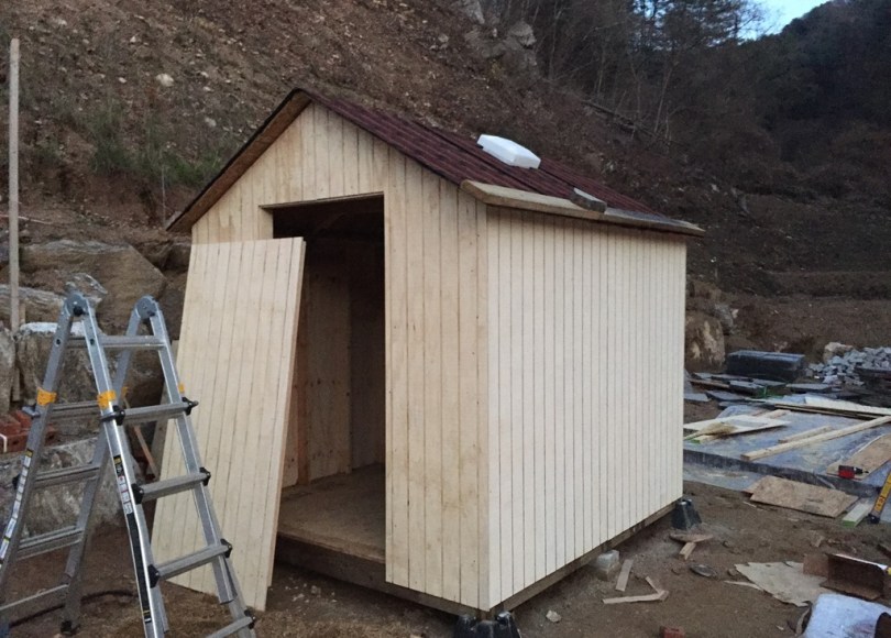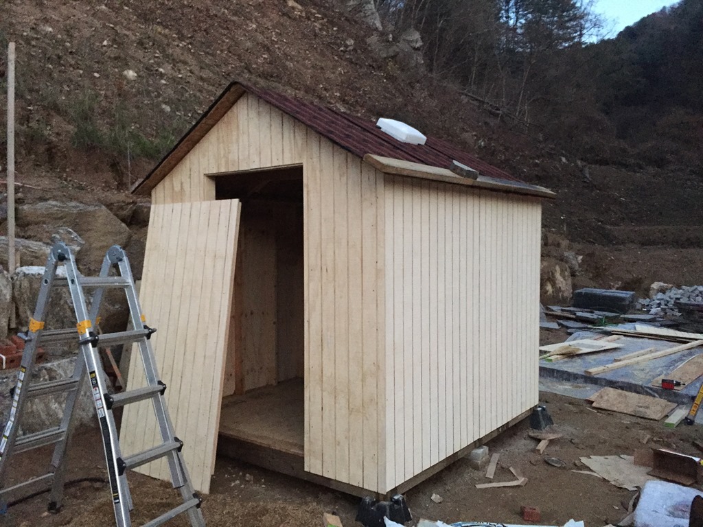 도어까지 만들었으나 경첩을 설치하려면 소켓렌치공구가 필요한데 공구가 없어 마지막 문달기는 다음에 마무리 하기로 하고 창고만들기 작업을 마무리하였습니다.