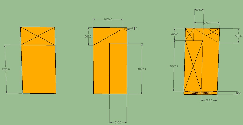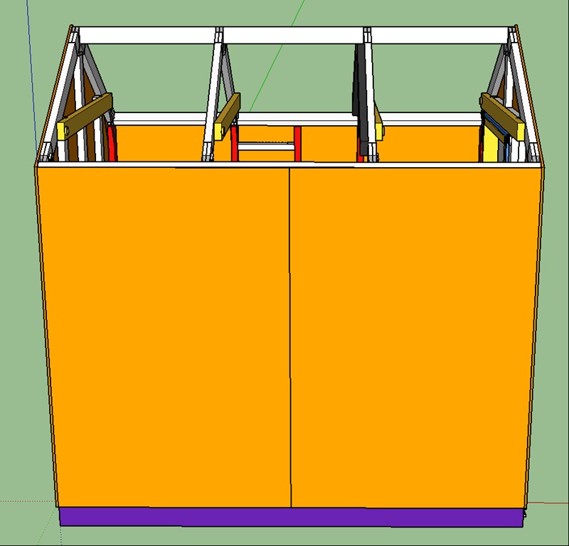 아래의 측면모양과 같이, 4ft x 8ft의 표준 합판자재를 자르지 않고 바로 붙일 수 있게 사이즈를 맞춰 디자인합니다.
