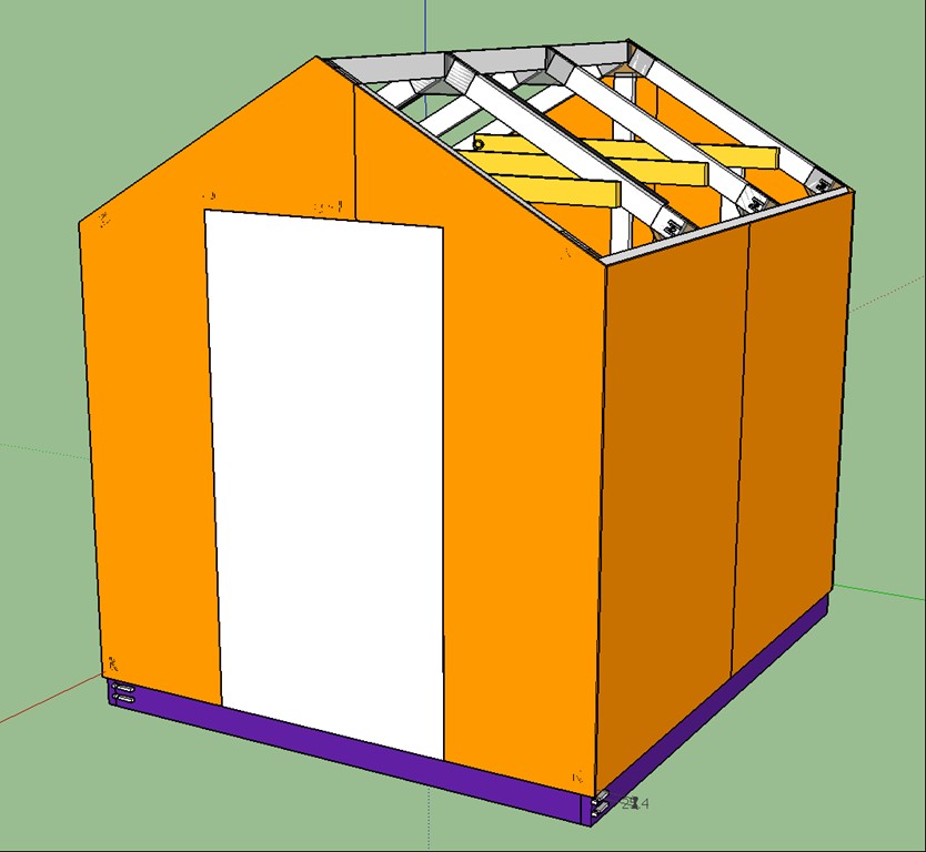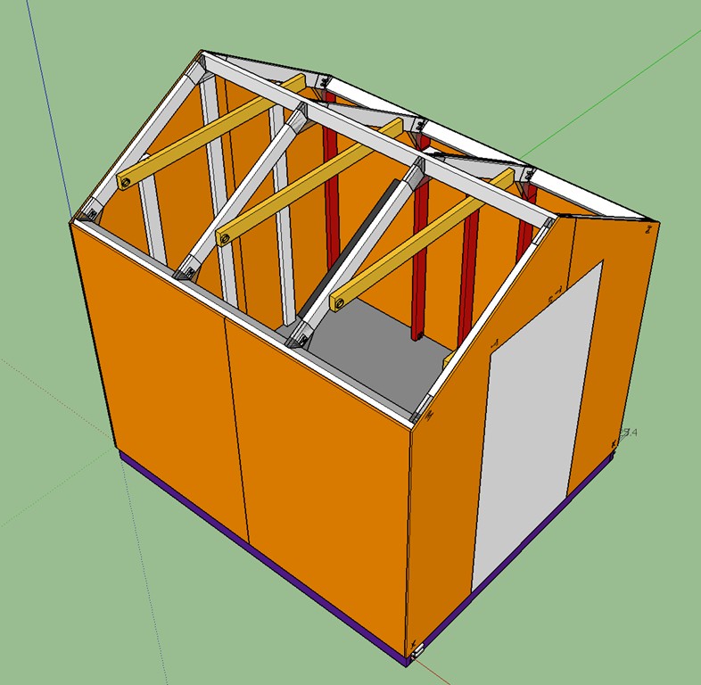 아무리 작은 창고라도, 북미식 경량목구조의 원칙에 따라, 스터드간격은 최대 24인치간격, 트러스와 장선까지 모두 수직하중이 일치되게 만들어 구조적으로 튼튼하면서도 자재낭비가 없도록 합니다.