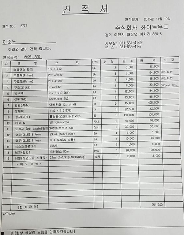각 자재도 아래와 같이 미리 재단 사이즈와 수량을 매뉴얼화 해서 처음 하는 작업 우왕좌왕 하지 않도록 합니다.