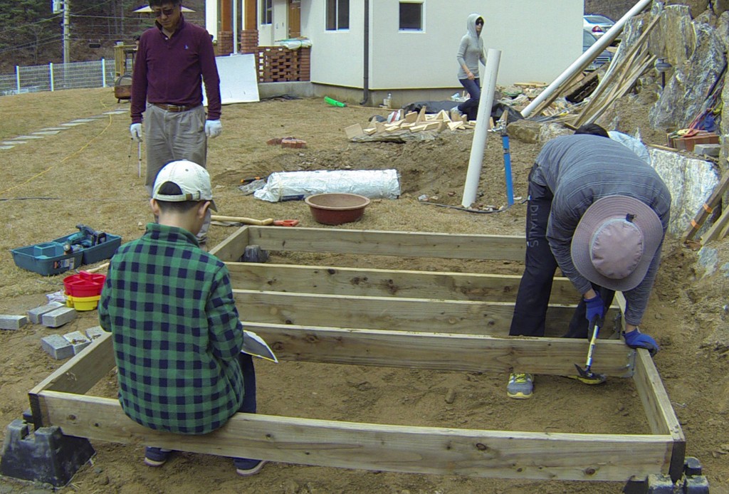 Raised wood floor 바닥 완성. 아주 견고하여 뿌듯합니다.