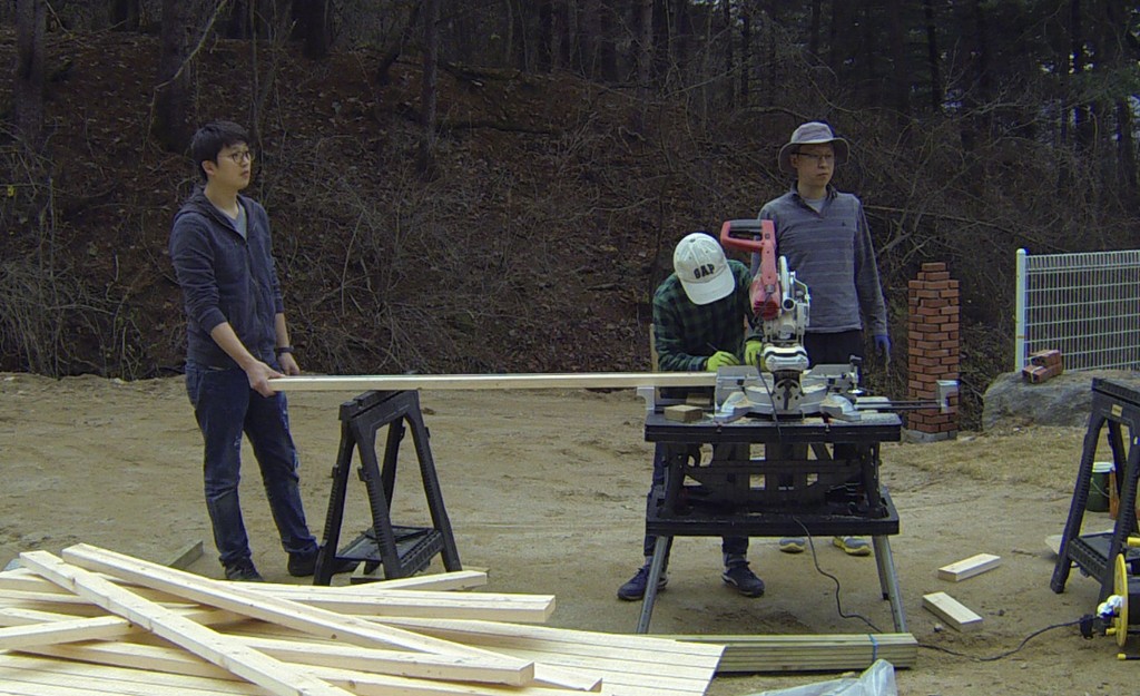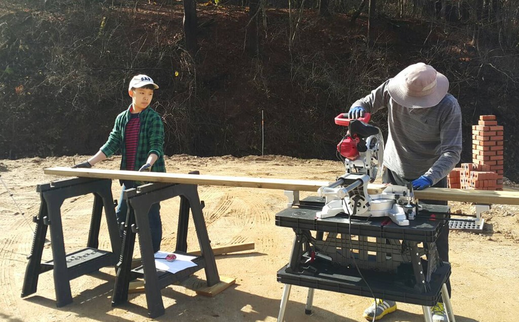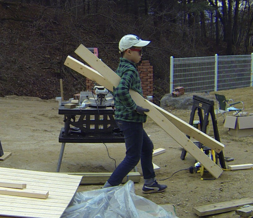 럼버는 설계한 치수대로 성민이가 치수 재어주면 제가 톱으로 자릅니다.