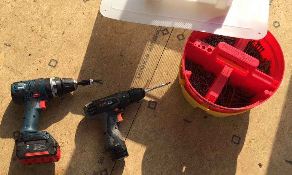 나사못은 전동충전드릴로 박는데, 64mm #8 두꺼운 나사못은 토크가 약한 전동드릴로는 토크부족으로 기어가 헛돌아 끝까지 박을 수가 없었습니다. 몇번 작업했더니, 그동안 애용하던 아임삭 14.4v 핸드드릴(허용토크 30NM) 기어가 완전히 망가져 버림.. 그래서, 다음날 급히 크고 무거운 18V 보쉬 전동드릴(허용토크 50NM)제품을 구입해 사용하고 나서야 정상적인 작업이 가능하였습니다.