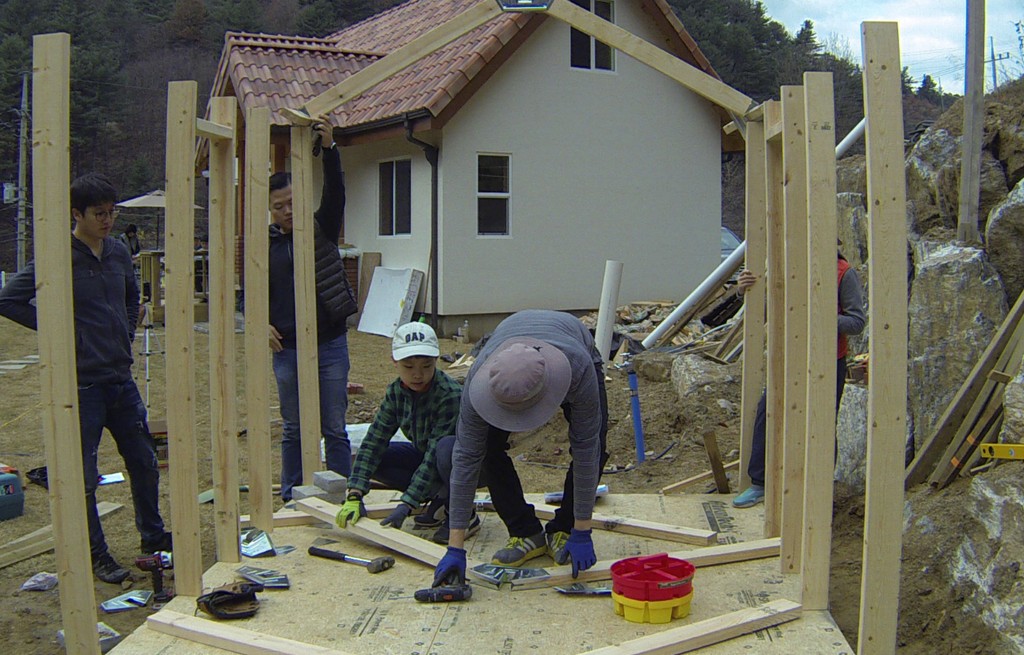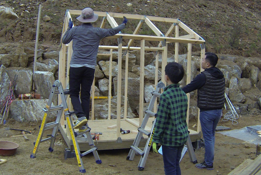 초등6학년 이성민군과 신축한 외삼촌 주말주택 정원용 창고만들기에 도전합니다.
