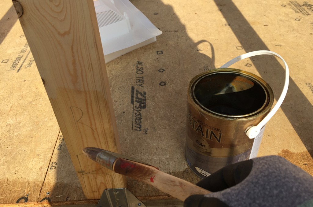 유성오일스테인을 재단한 목재의 단면, 물이 묻을 수 있는 곳에 충분히 발라줍니다.