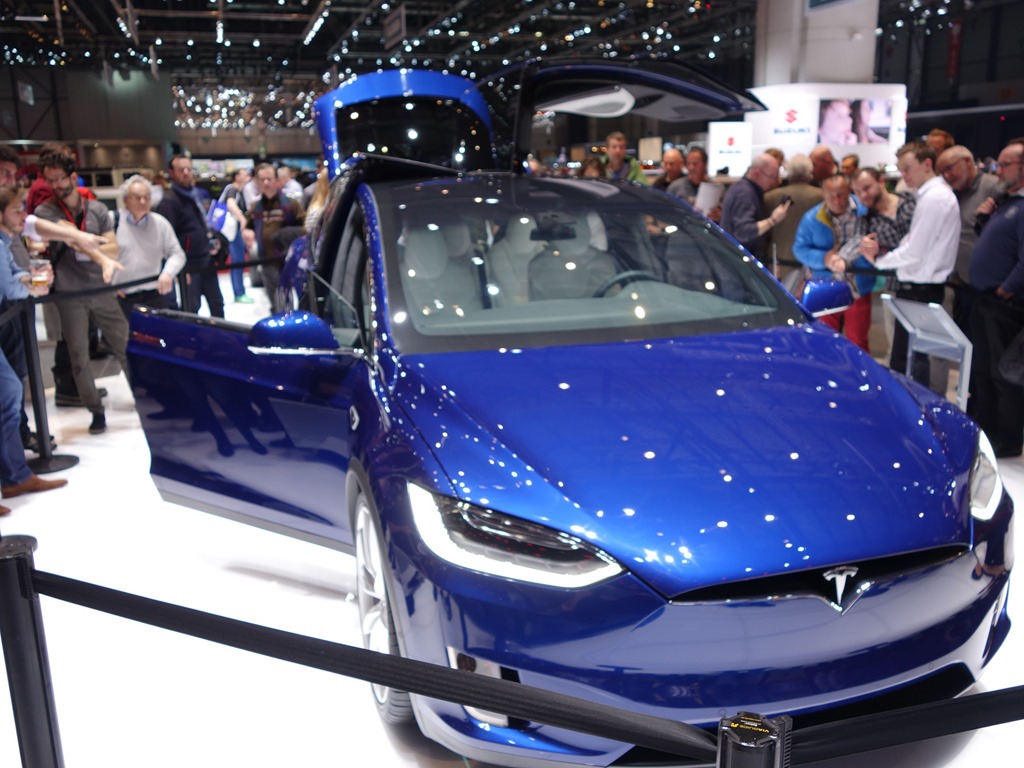 유럽에서도 테슬라는 관람객들에게 가장 많이 둘러쌓이는 인기차이죠~