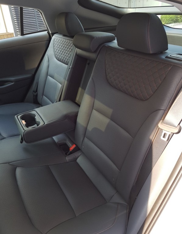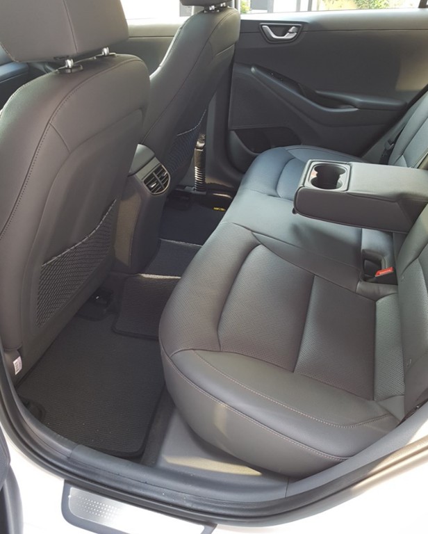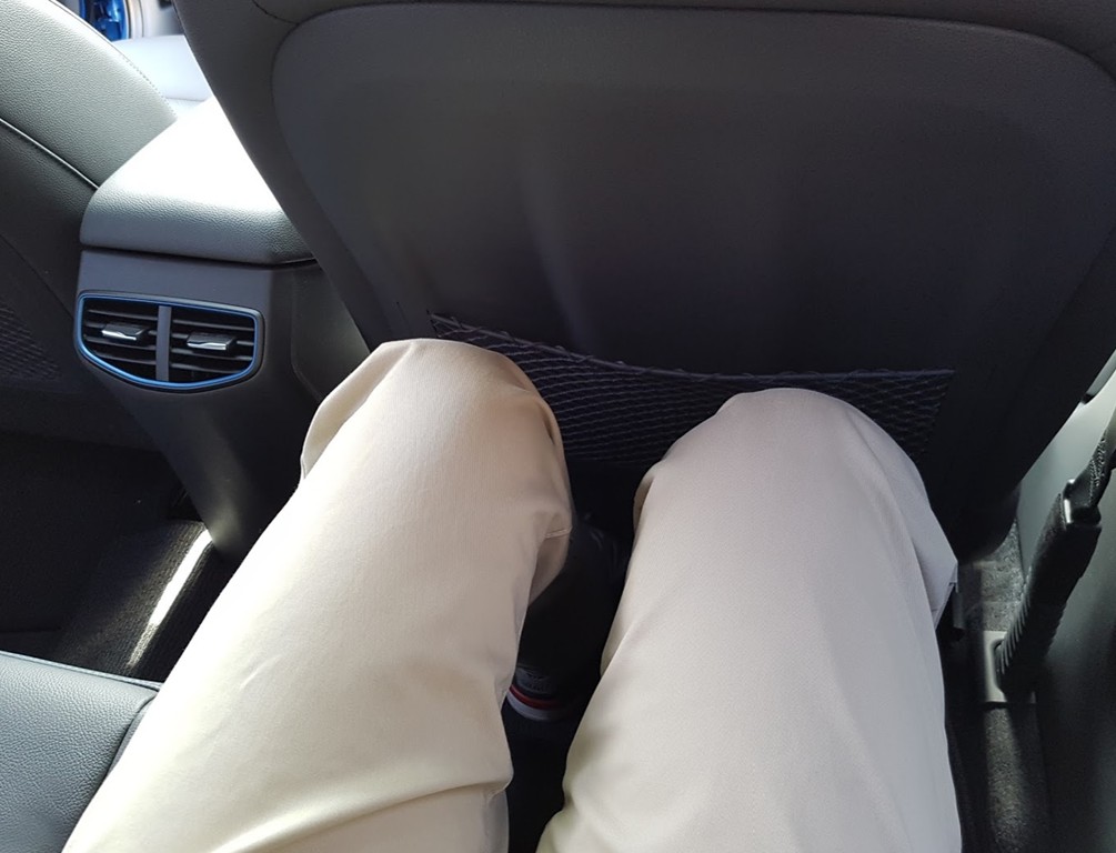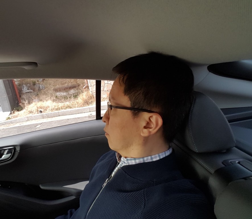 아이오닉의 가장 큰 단점, 유일한? 단점은 뒷자리 헤드룸 입니다. 176cm키의 성인이 엉덩이를 뒤에 바짝 붙이면, 머리가 살짝 닿습니다. 사진에 보이듯이 머리가 닿는 공간 바로 앞에는 좀 더 깊게 판 실링 공간이 나오는데, 이 헤드룸의 배치와 설계는 현대차가 디자인 실수를 한 것 같습니다. 이 결정적인 뒷자리 디자인 실수 때문에, 아이오닉은 해외에서 우버X나 택시용으로의 도요타 프리우스와의 경쟁에서 결정적 단점이 될 것으로 생각됩니다.