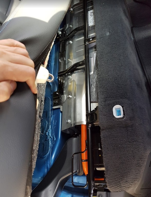 첫번째 사진은 아이오닉 하이브리드의 뒷자리 바닥 배터리이고, 두번째 사진은 아이오닉EV의 뒷자리 배터리 입니다. EV는 배터리가 꽉 차 있고 냉각 흡입벤트가 크게 자리잡고 있습니다.