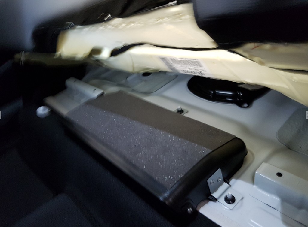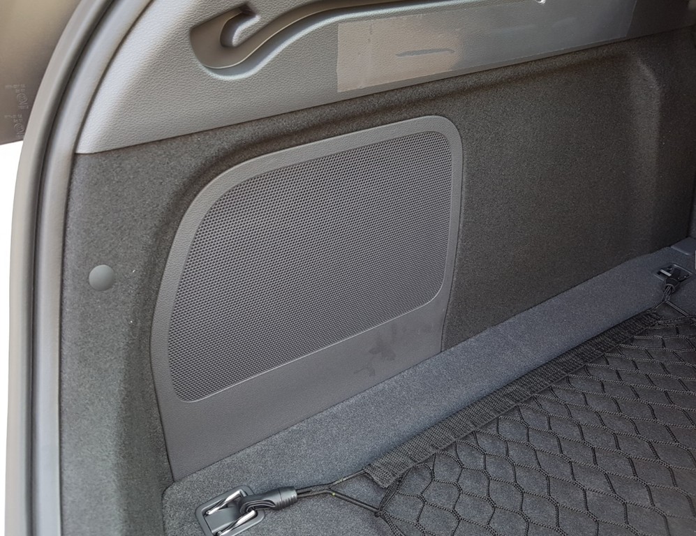 트렁크 스크린을 펼친 모습과 트렁크 오른쪽 구석에는 서브우퍼가 설치되어 있습니다.