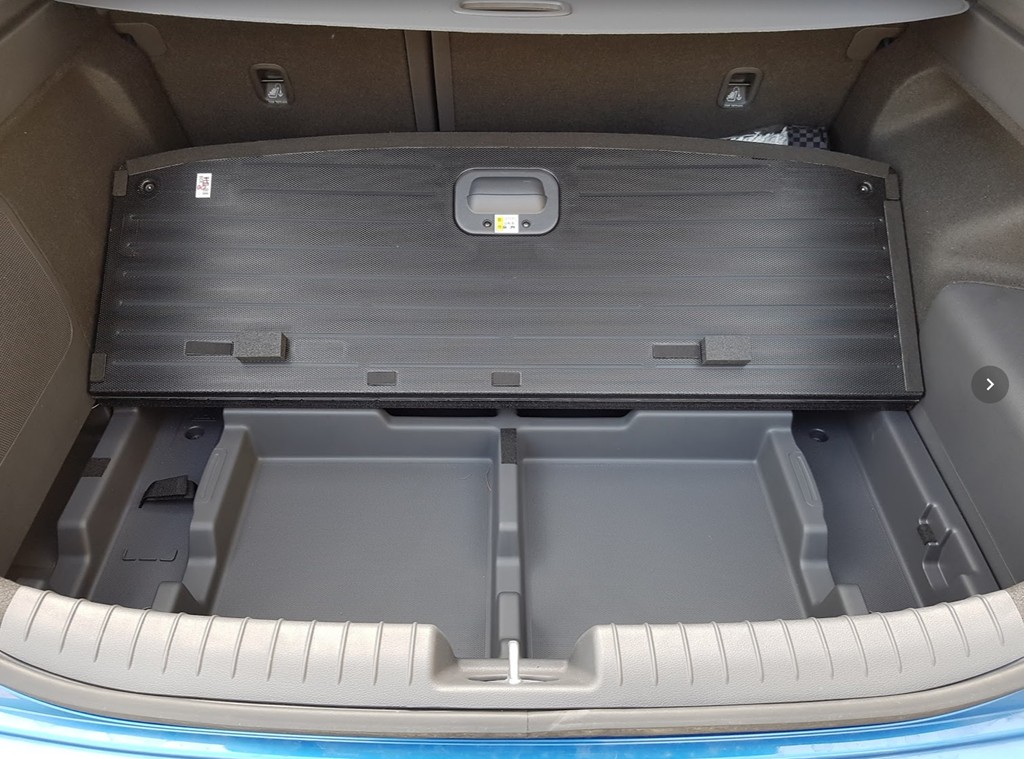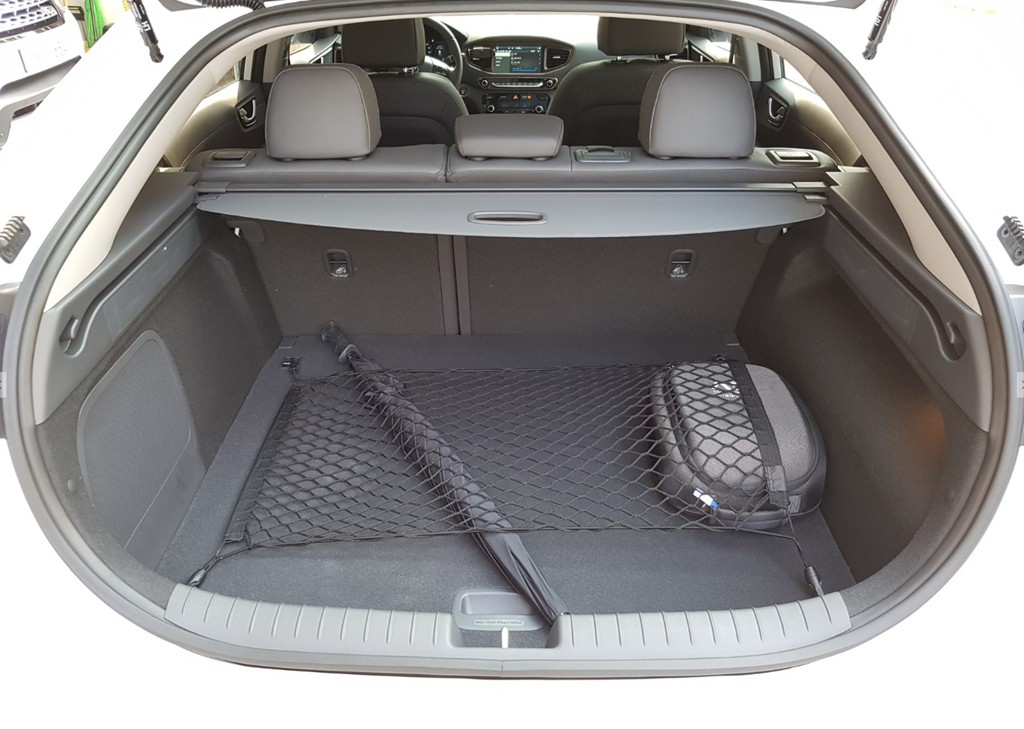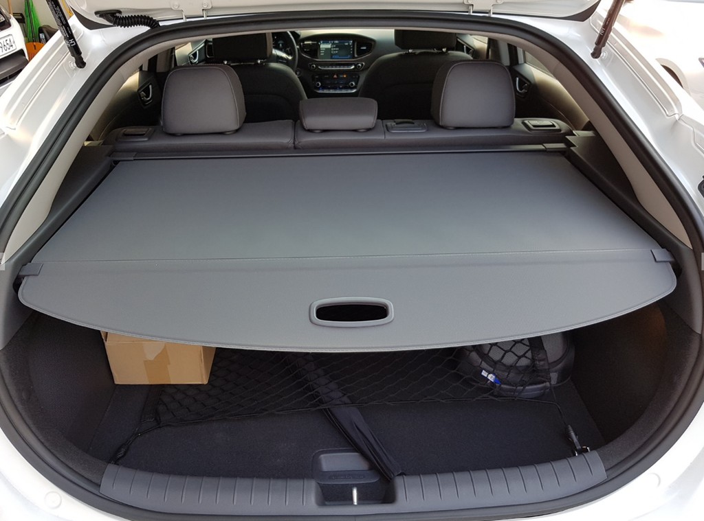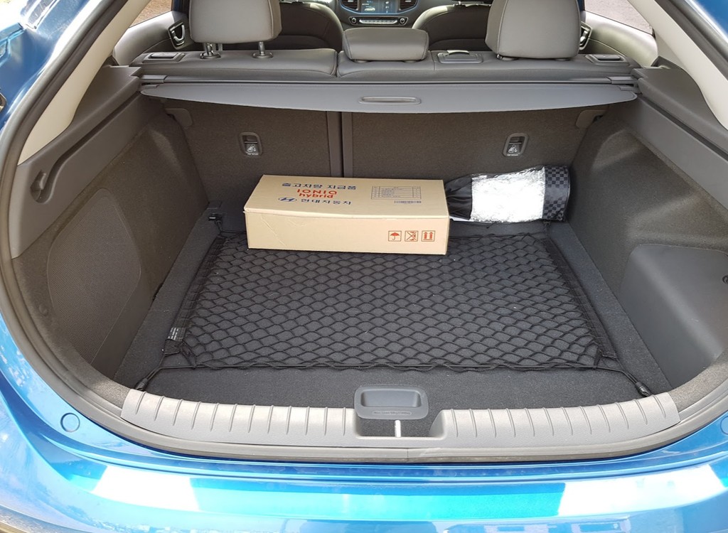 트렁크 아래 선반공간이 하이브리드모델은 2배 이상 더 많은 수납공간을 제공하며, EV모델은 배터리가 그 공간을 차지하고 있어 선반공간이 작습니다.