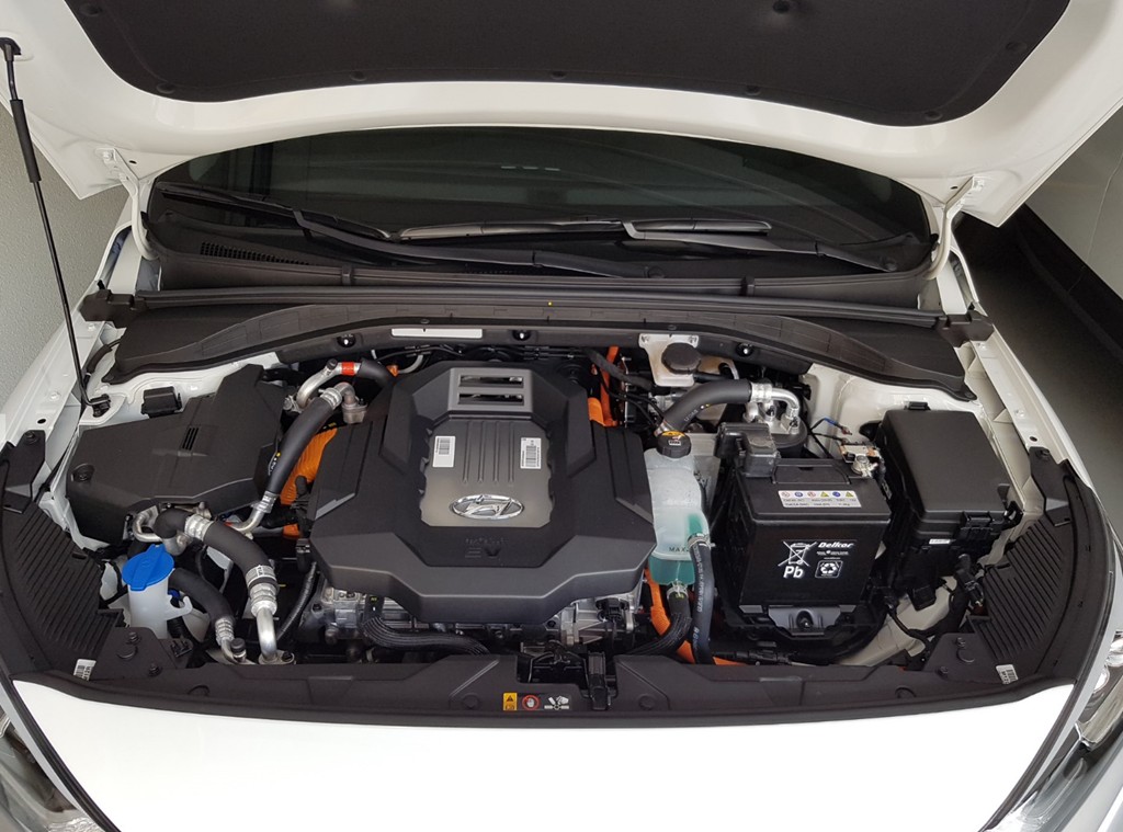 아이오닉EV의 엔진룸은 횡~ 합니다. 모터와 감속기, 인버터가 마지 엔진인양 엔진커버 아래에 위치해 있고, 오른쪽엔 냉각수가 보입니다. 그래서 크진 않지만 앞쪽에 래디에이터도 있습니다. 오른쪽엔 시동배터리가 있고요. 전반적으로 섀시를 EV전용모델로 설계한다면, 이 공간을 대폭 줄이거나 추가 트렁크 공간으로서 활용할 수도 있겠습니다. 즉, 앞으로 EV는 하이브리드 모델과 공용화되지 않은 EV전용 섀시설계를 했을 때 훨씬 더 좋은 상품성의 모델이 나올 여지가 있겠습니다.