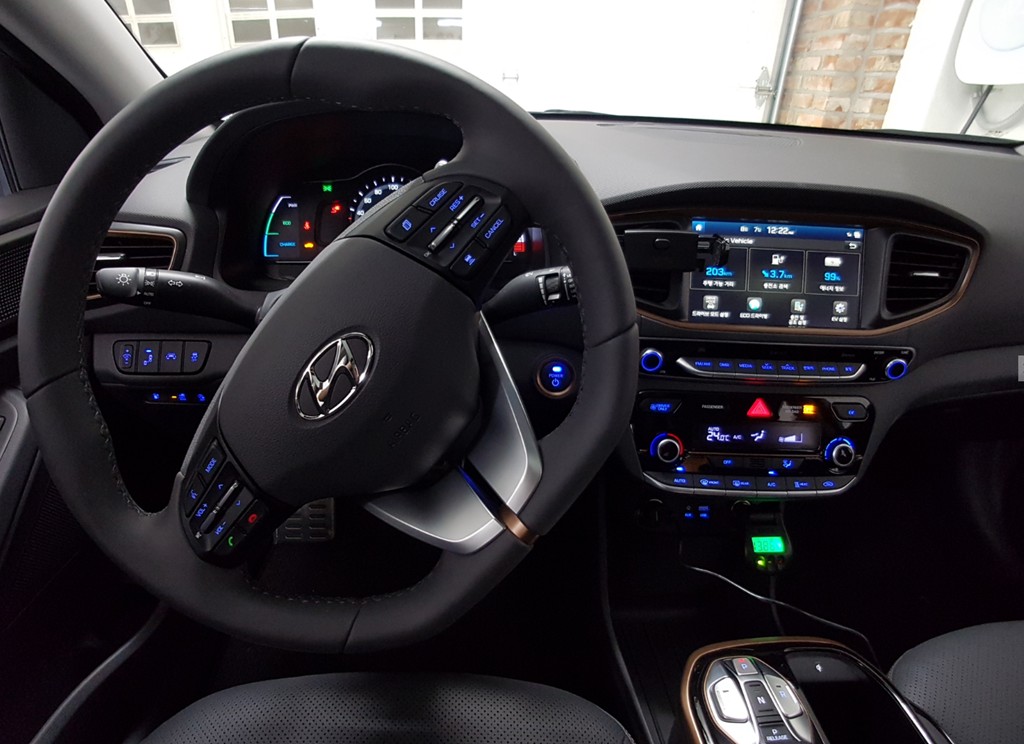 아이오닉EV의 인테리어 부분 딱히 흠잡을 데 없이 만족스럽습니다. 터치감이나 감성품질면에서 일본이나 프랑스 브랜드 차량보다는 우수하고, 독일 브랜드 보다는 조금 싼티가 나지만, 가격을 고려하면 충분히 이해할 수 있는 수준입니다. 터치감 외에 주행 소음이나 잡소리 등은 종합적으로 8000만원대 차량보다도 더 억제되어 있기에, 가격과 브랜드를 감안하지 않고, 객관적으로 실내 쾌적성을 평가하자면, 이보다 2배가격의 고급차량과 견주어도 부족함이 없습니다.