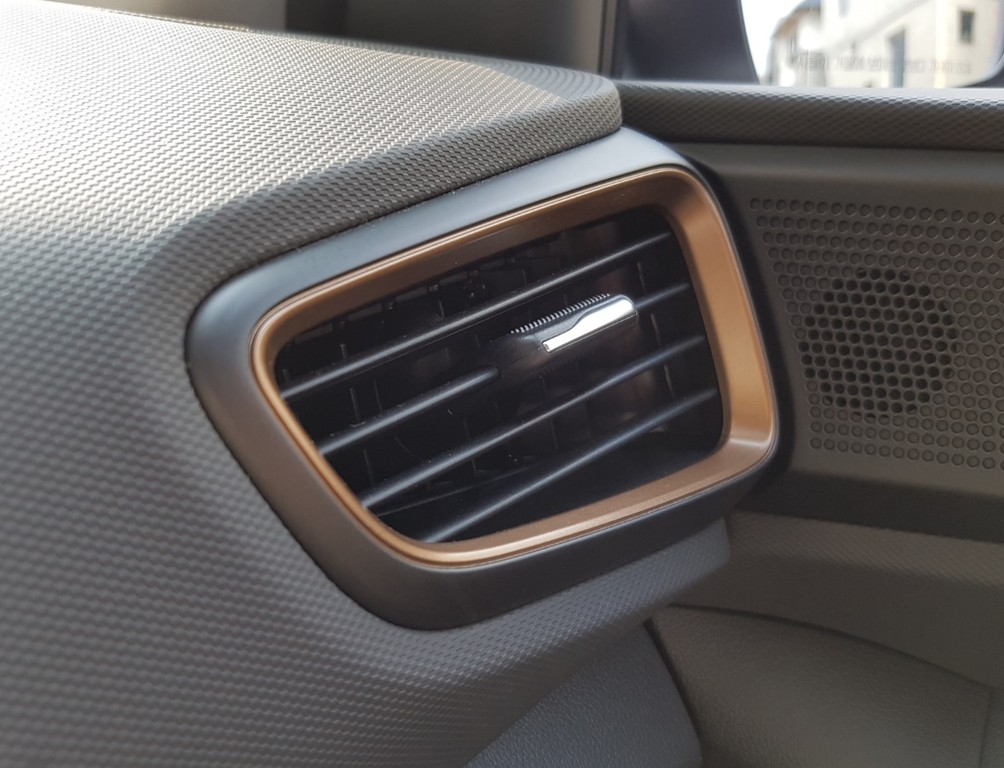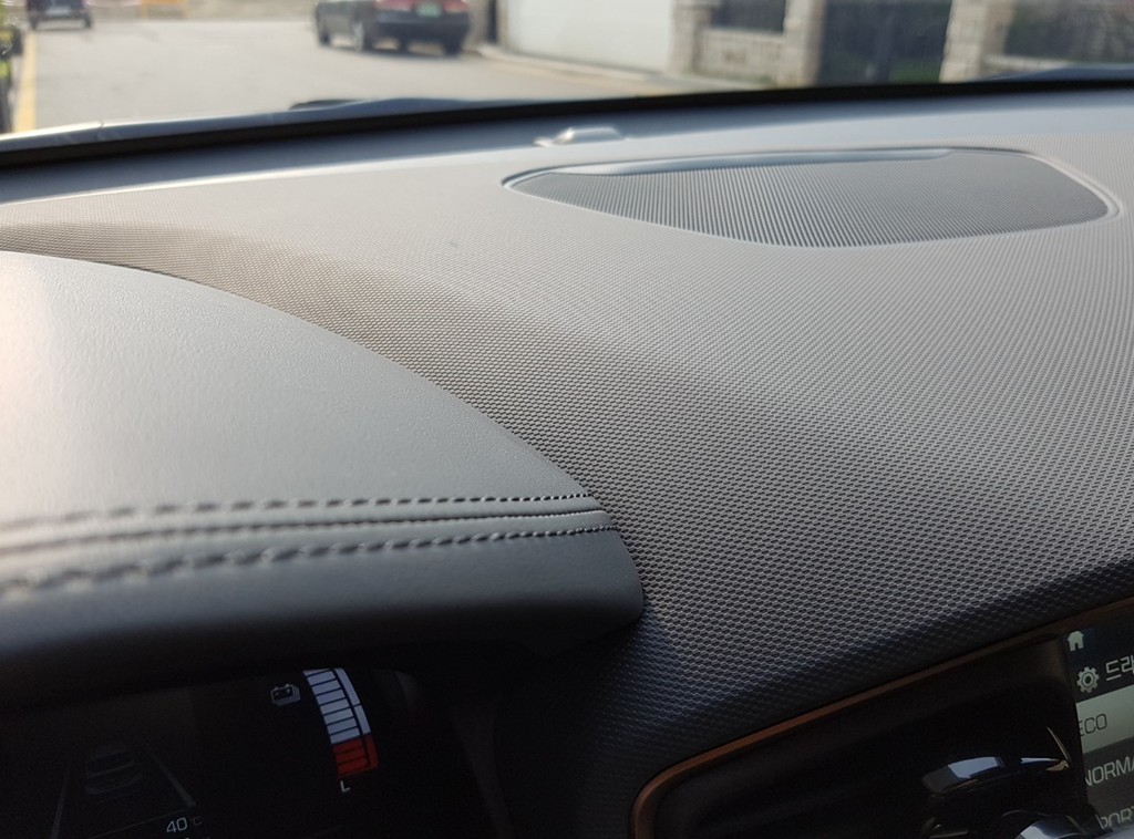 대시보드 콕핏 커버는 인조가죽마감, 그외는 거칠게 matt한 플라스틱이며, 개인적으로 만족스럽습니다. copper컬러의 트림액센트도 만족스럽습니다. 다만, 차량 컬러 오랜지,블루,옐로우 등에서는 실내트림이 copper가 아닌 프리우스와 비슷한 유광 화이트 트림인데, 그건 매우 맘에 안들더군요..