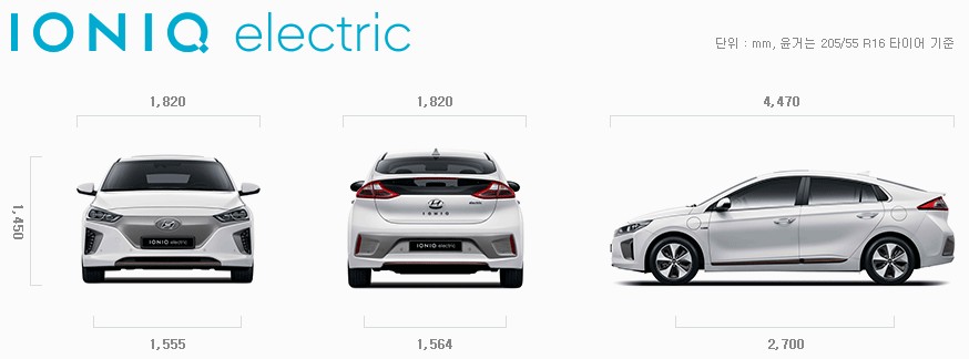 아이오닉 일렉트릭은 기본적으로, 아반떼AD, 신형 토요타 프리우스와 같은 2700mm의 휠베이스로 비슷한 실내 공간을 갖추고 있다고 예상해 볼 수 있습니다.