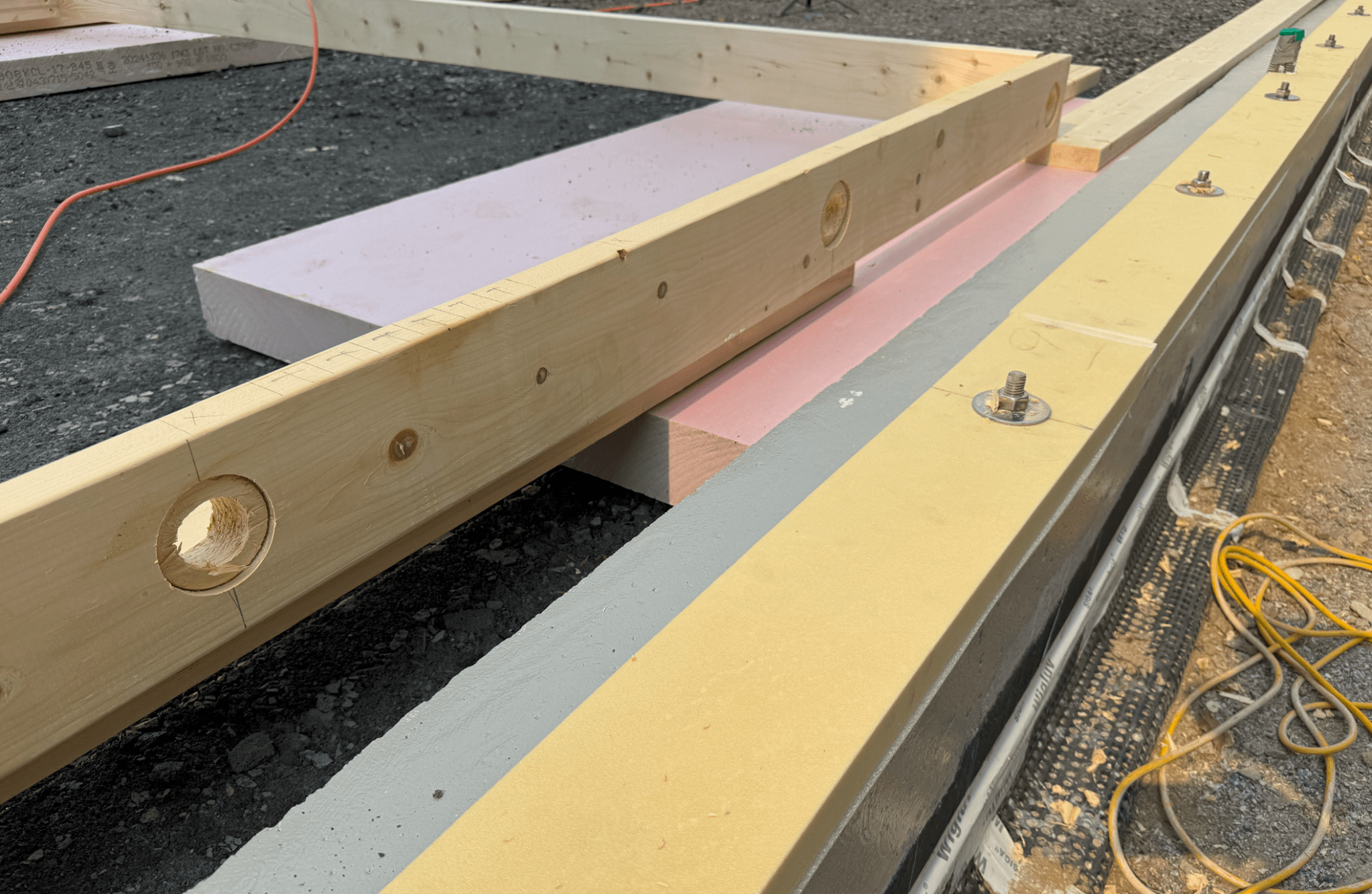 Zero30Haus는 집의 바닥-벽-지붕까지의 모든 6면에 단열라인이 끊기지 않게 연속적으로 연결시키는 것이 중요한 목표여서 이를 달성하기 위해서는 토대목 부분의 단열성을 확보할 솔루션이 필요했습니다.