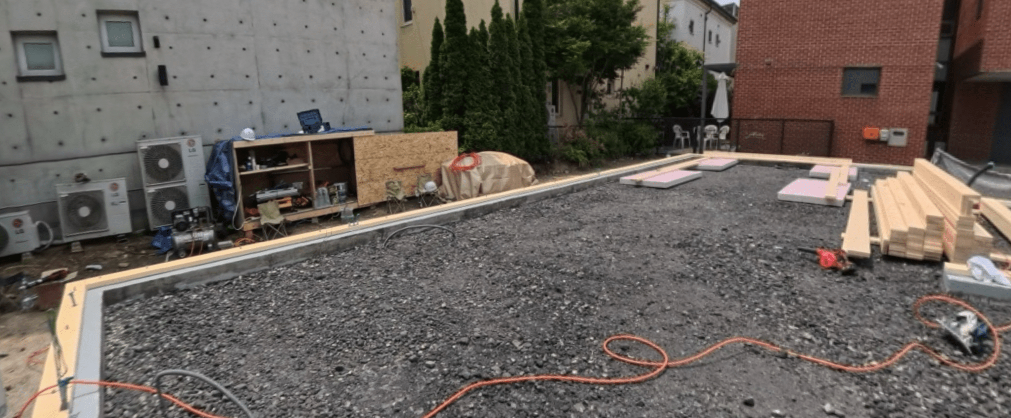 그래서 1번 수증기의 유입 가능성은 토대목이 접촉하는 콘크리트 표면을 class-1 방습층을 구성하여 습기를 완전히 차단함으로서 해결되었습니다. (이전 블로그게시물 참조)