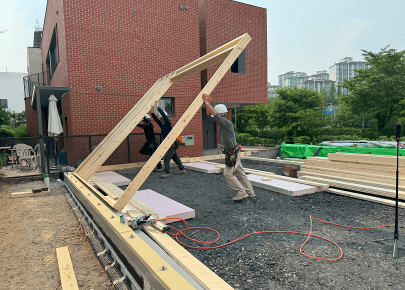 이렇게하여 이제 목조주택을 시공하기 위한 모든 준비를 드디어 마쳤습니다.