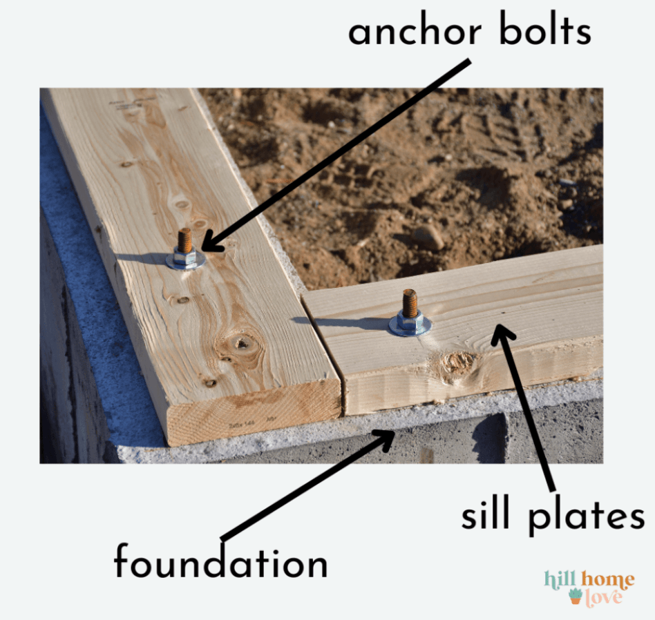 목조주택이라도 기초는 콘크리트로 하기에 콘크리트와 목구조가 바닥에서 만나는 지점이 생깁니다. 이를 sill plate라고 하고 한국에서는 토대목이라고 합니다.