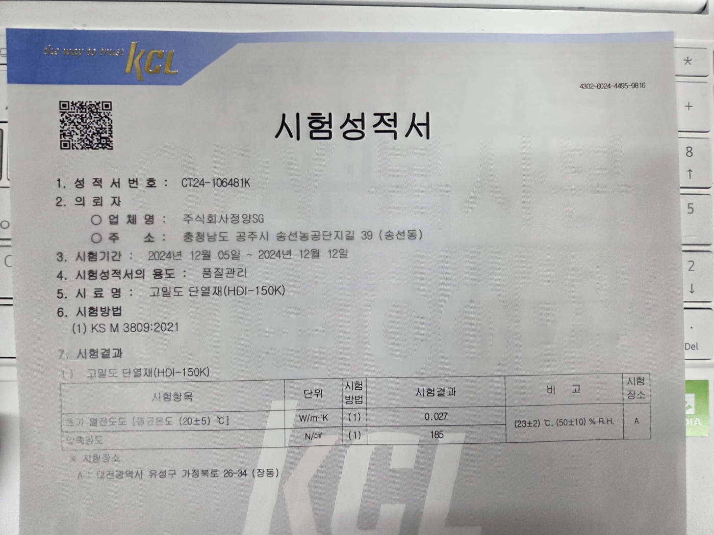 정양SG HDI-150K 단열재의 압축강도 약 2680psi, 단열성 R5.34/inch