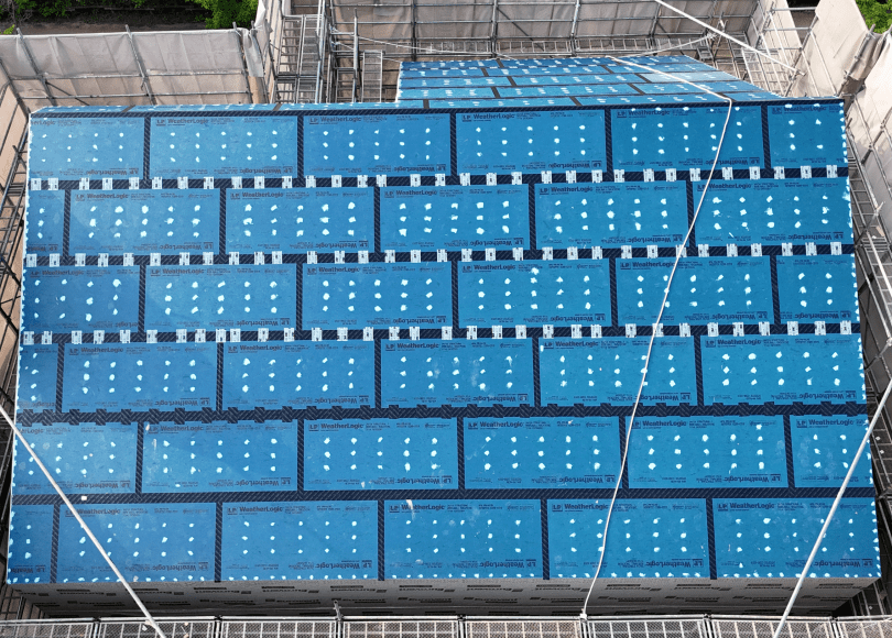 이 방식은 실내측 결로가 벽체 내부에 안생기는 충분한 성능의 외단열과 방수+기밀을 통합하여 Zip system OSB보드에서 WRB를 형성하고, 실내 방습비닐시공을 없애는 방식입니다.