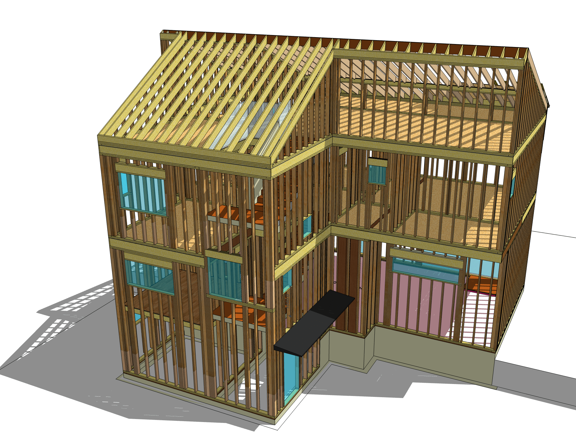 Zero30Haus는 전통적인 북미식 2×6 (140mm x 38mm SPF 목재)스터드를 사용하여 구성된 목조주택입니다.